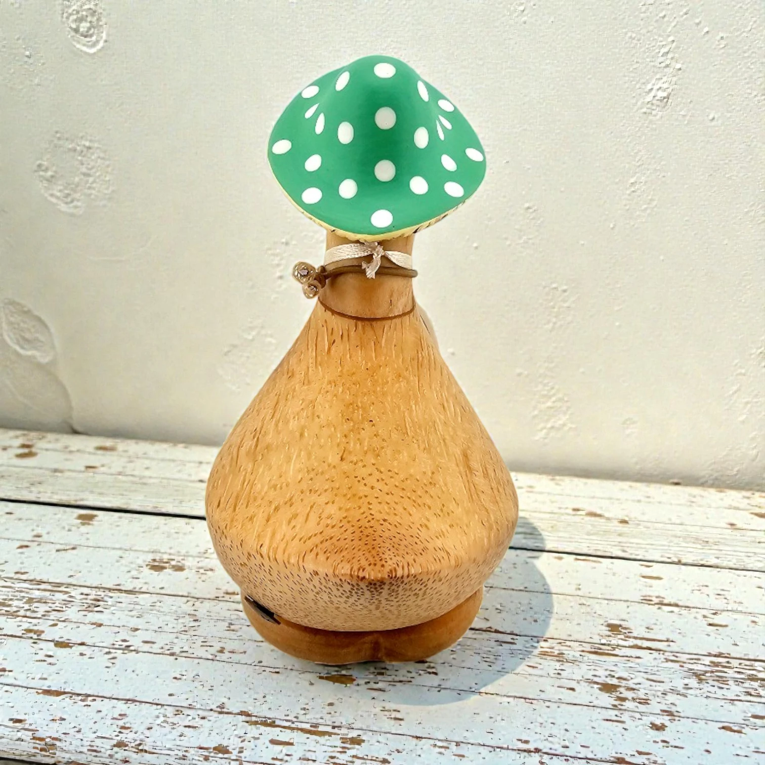 Of all the Toadstool Folk, this one looks most like they have just arrived from somewhere worth going. Head tilted forward beneath a mint green spotted toadstool hat, body leaning into the next moment, there is an unmistakable sense of motion caught mid-thought. They are not running. But they are absolutely thinking about it.